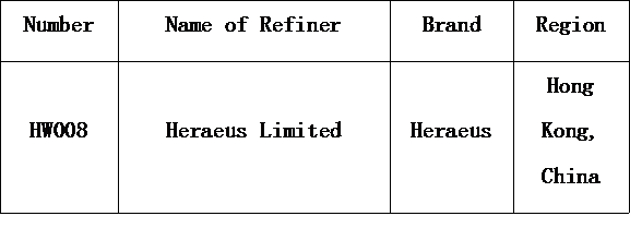 Announcement of Adding Heraeus Limited as SGE Overseas Standard Gold Ingot Refiner